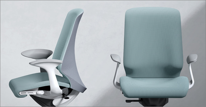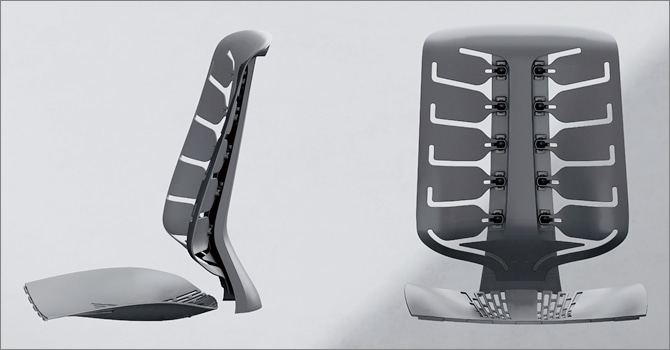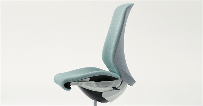 独自のスリットにより、体格に合わせて自然とシェルが変形し、身体をやさしく包み込みます。 細かい調節を必要とせずに、大柄な人、小柄な人などさまざまな体格にしっかりフィットし、快適な座り心地を実現します。 椅子と身体が接する面積が広くなり、身体にかかる圧力が適切に分散されます。 体圧分散により血流が圧迫されず長時間座っても疲れにくくなっています。