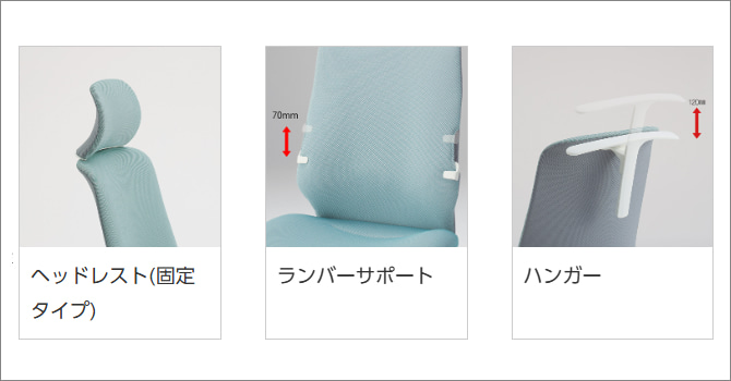スフィアのランバーサポートは、上下70mmの範囲で調節が可能です。 スフィアのランバーサポートは背(背シェル内)に内蔵されておりますので、後付には対応できません。