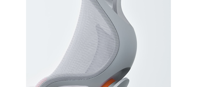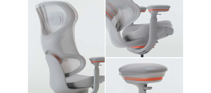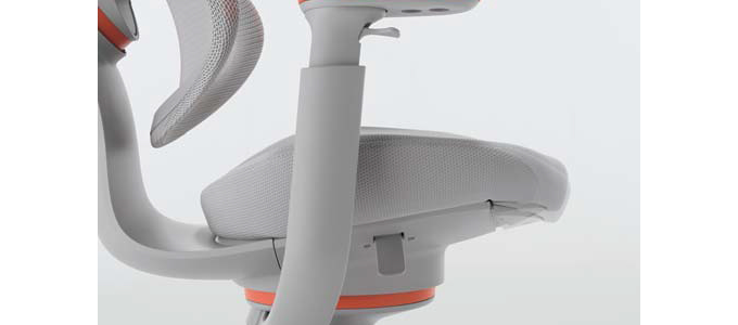 背枠/強化ナイロン 背張り地/ポリエステル弾性メッシュ 座板/ポリプロピレン 座クッション/モールドウレタン 座張り地/ポリエステル 可動肘/強化ナイロン 肘パッド張り地/合成皮革 脚羽根/強化ナイロン キャスター/60mm径ポリウレタン巻き双輪キャスター
