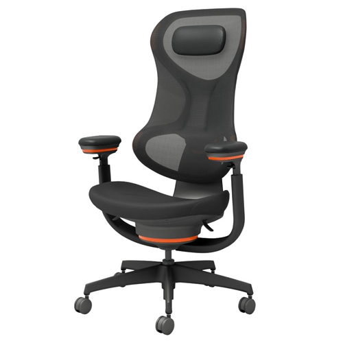 コクヨ イングクラウド(ingCloud) ヘッドレスト付きタイプ(可動肘) ダークモデル ピートグレー / サンオレンジ ウレタンキャスター