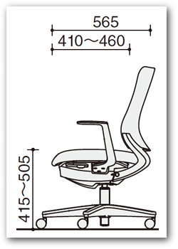 幅:580mm / 奥行:565mm / 高さ:890〜980mm / 座幅:490mm / 脚羽径:680mm / 座奥行:410〜460mm / 座高:415〜505mm / 肘高:590〜680mm