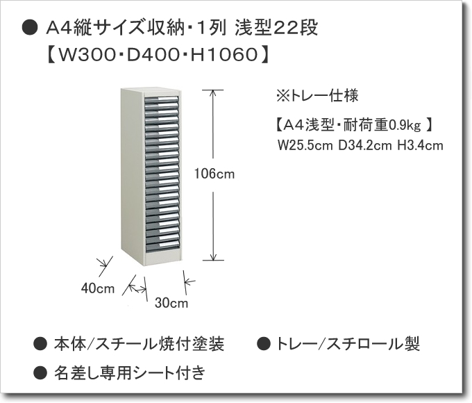 『書類整理庫』 A4・縦サイズ収納 ≪1列・浅型22段タイプ≫