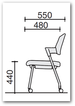背 / 樹脂:ポリプロピレン 背クッション:ウレタンフォーム 背張り地:ポリエステル 座 / 座板:ポリプロピレン 座クッション:ウレタンフォーム 座張り地:ポリエステル 脚 / 25.4mm径スチール丸パイプ・粉体塗装 キャスター / 50mm径カーペット床用ナイロン双輪キャスターまたは硬質床用ゴム単輪キャスター