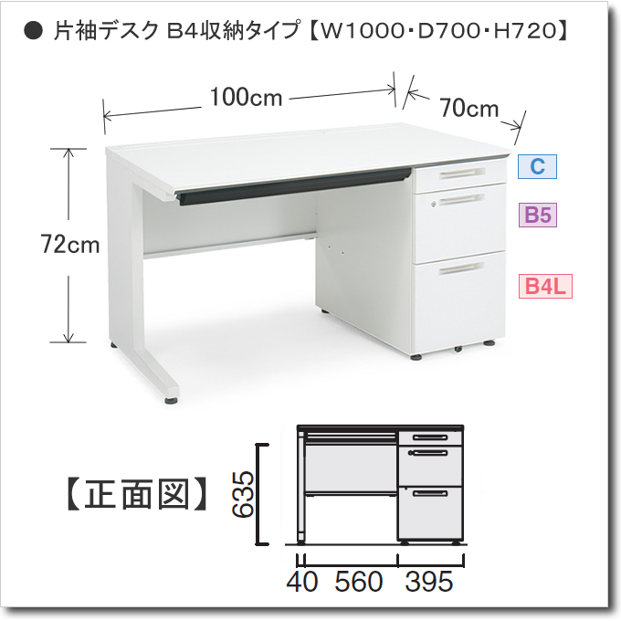 『ISデスクシステム』 片袖デスク・B4収納タイプ ≪ W1000・D700・H720 ≫